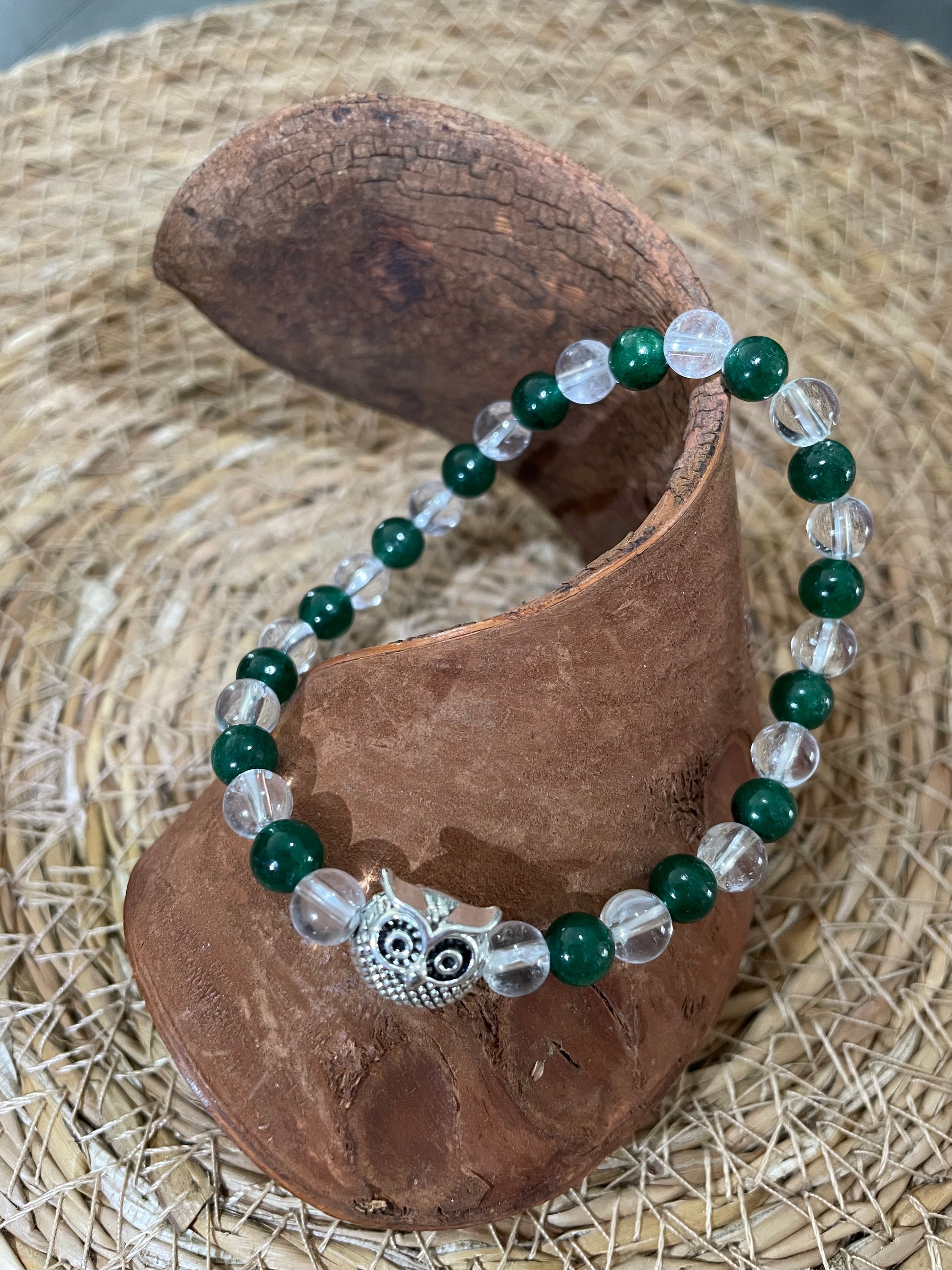 En pierres naturelles de Jade de Birmanie et Cristal de Roche.